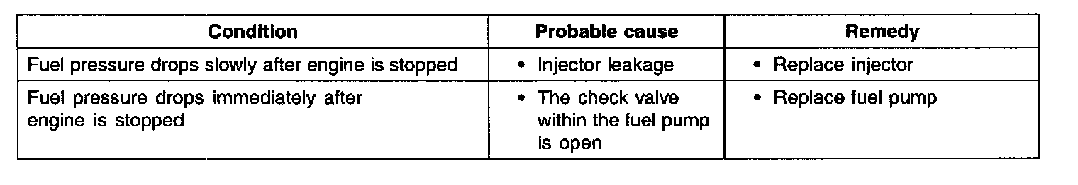 10. Stop the engine and check for a change in the fuel pressure gauge reading, which should hold for approximately 5 minutes.