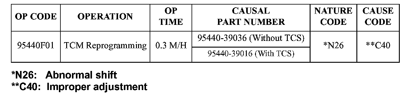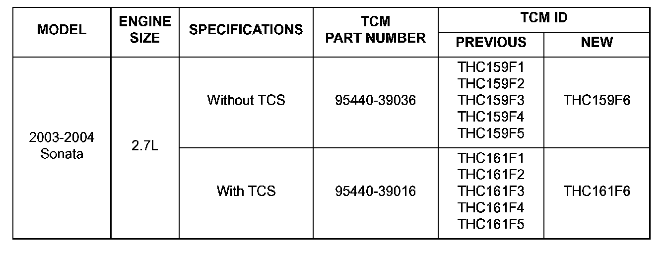 The Sonata 2.7L TCM reprogramming provides the following refinement updates:
