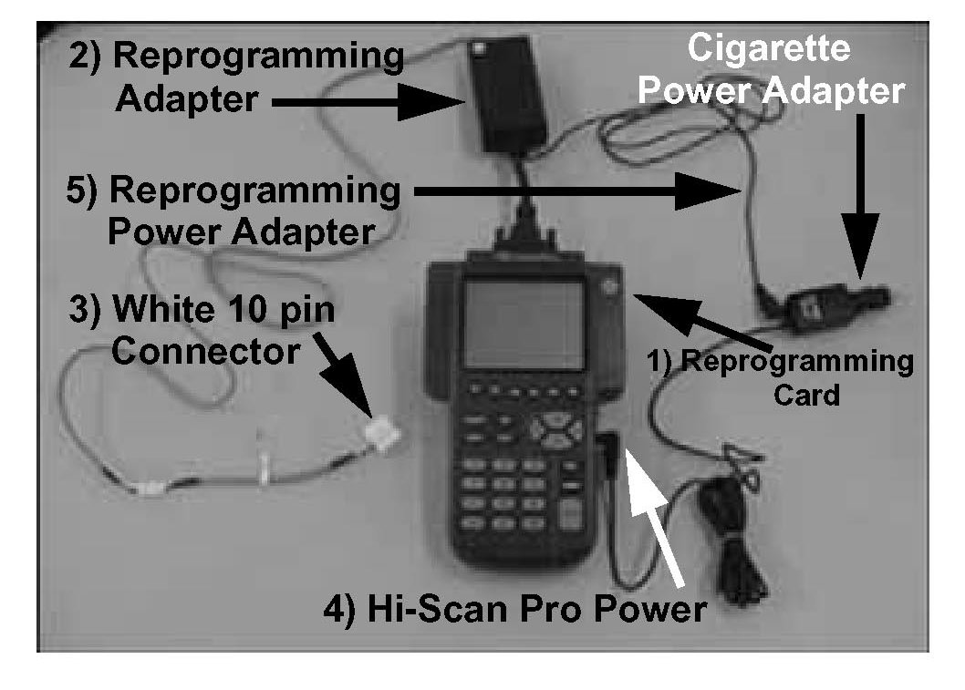 2. Be careful not to disconnect any cables connected to the vehicle or Hi-Scan Pro during reprogramming.