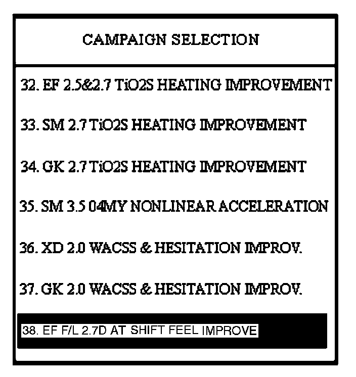 10. Select option "38. EF F/L 2.7D AT SHIFT FEEL IMPROVE" and press ENTER.