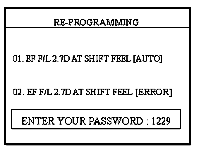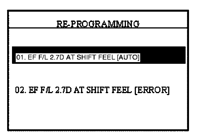 4. "REPROGRAM ERROR, PLEASE CHECK THE SYSTEM": In this case, you must reprogram manually after selecting the menu option "02. EF F/L 2.7D AT SHIFT FEEL [ERROR]".
