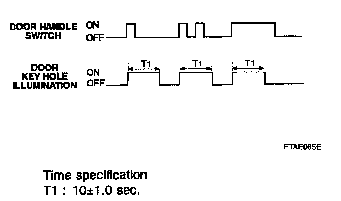 2. Although the door switch continue to be ON, the door handle illumination should be ON for 10 seconds