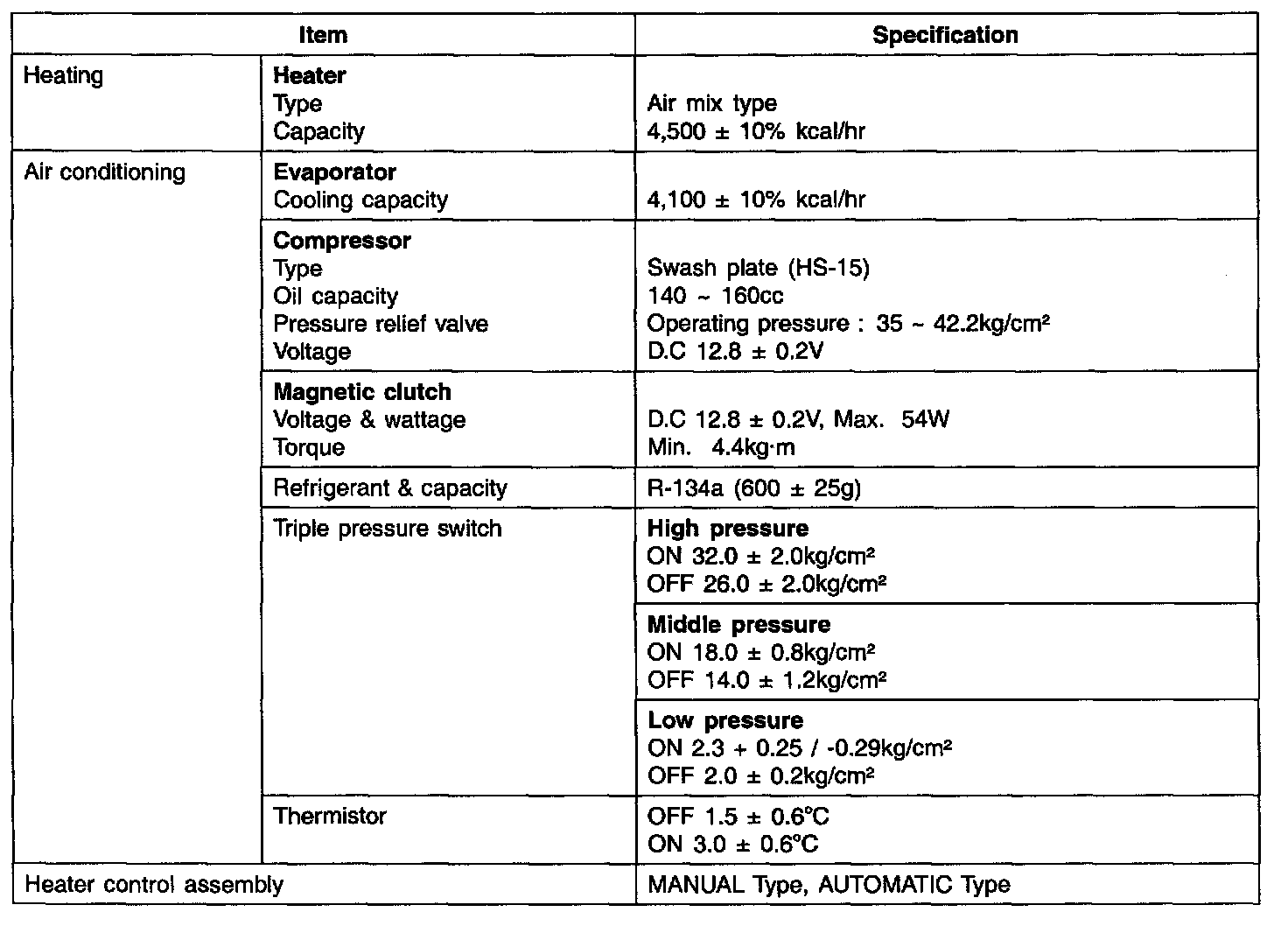 Heating and Air Conditioning: Specifications