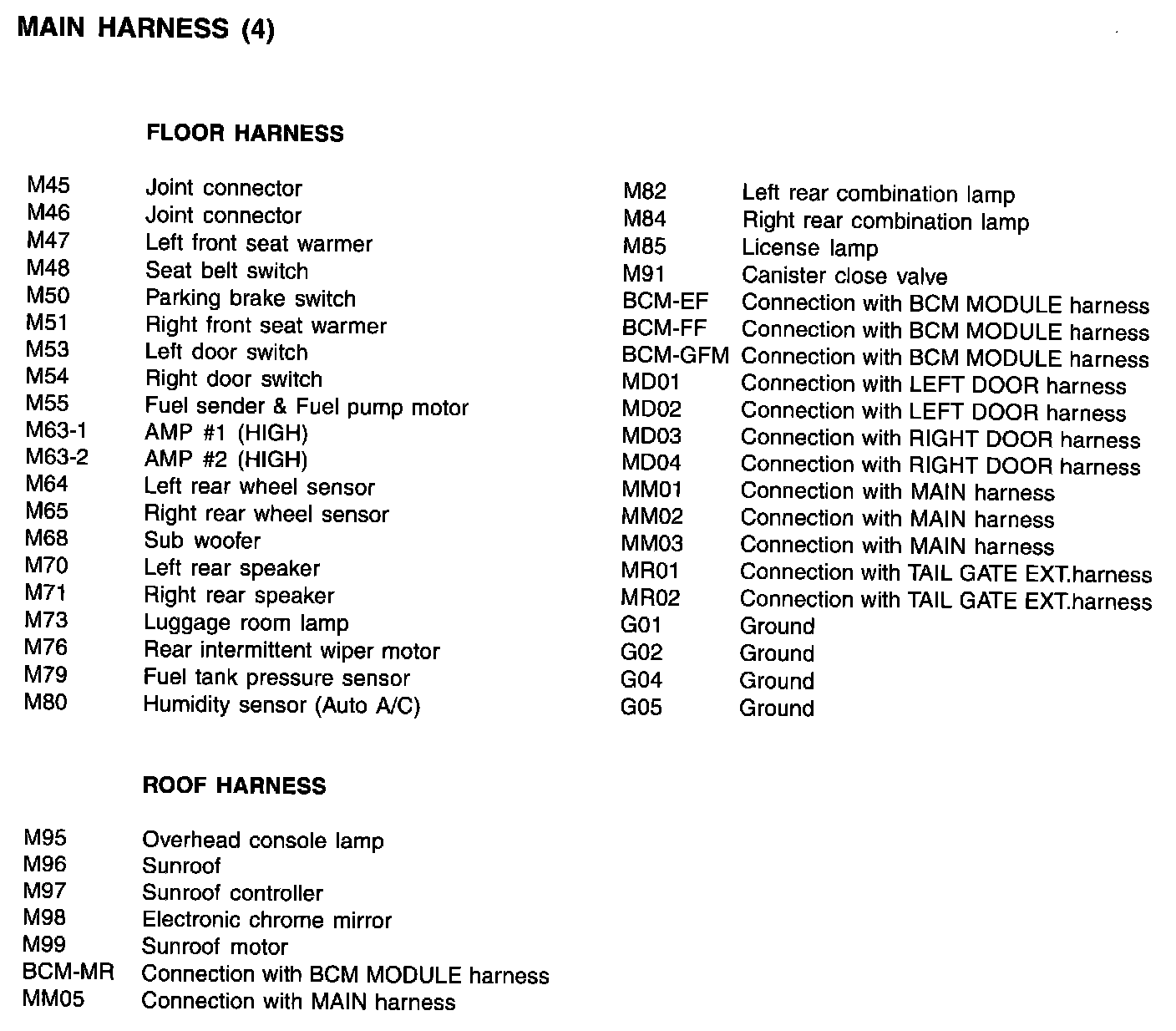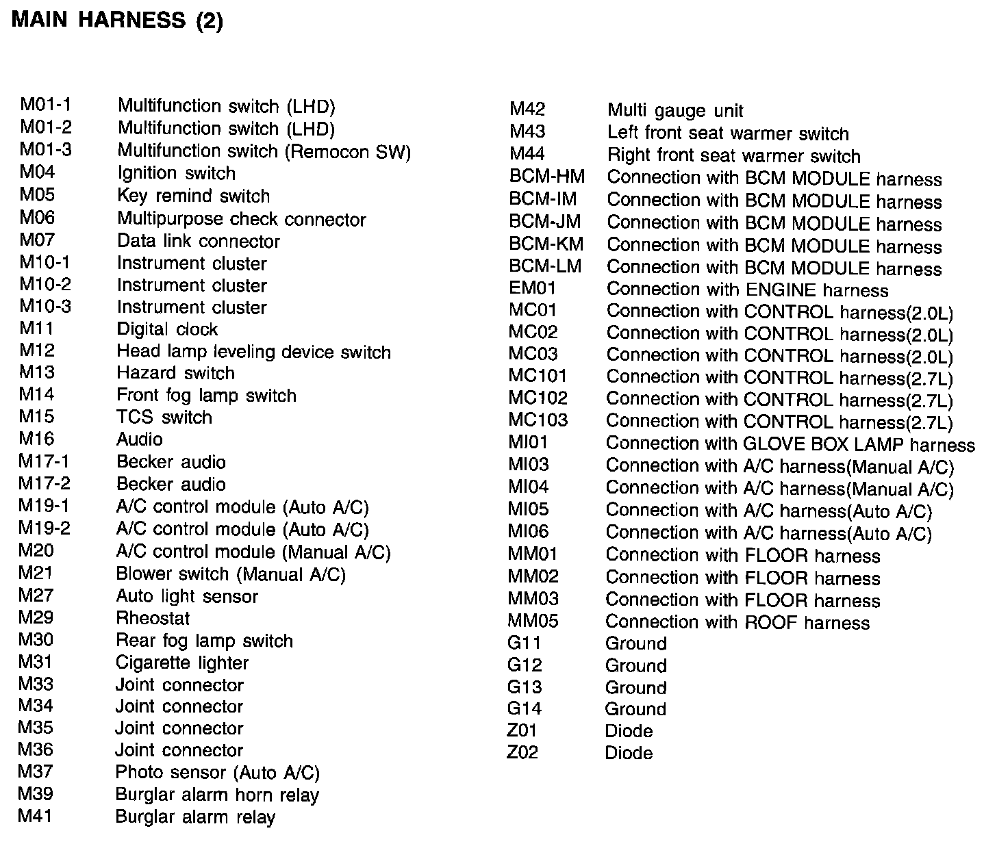 Main Harness Index: