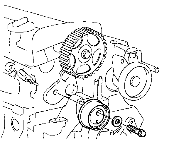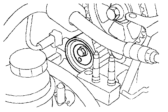 6. Remove the timing belt tensioner pulley.