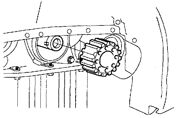 12. Install the flange and crankshaft pulley. Make sure that crankshaft sprocket pin fits the small hole in the pulley.