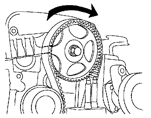 10. Turn the crankshaft two turns in the operating direction (clockwise) and realign crankshaft sprocket and camshaft sprocket timing mark.