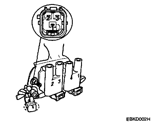 INSPECT IGNITION COIL1. Measure the primary coil resistance between terminals 1, 2 and 1,3.