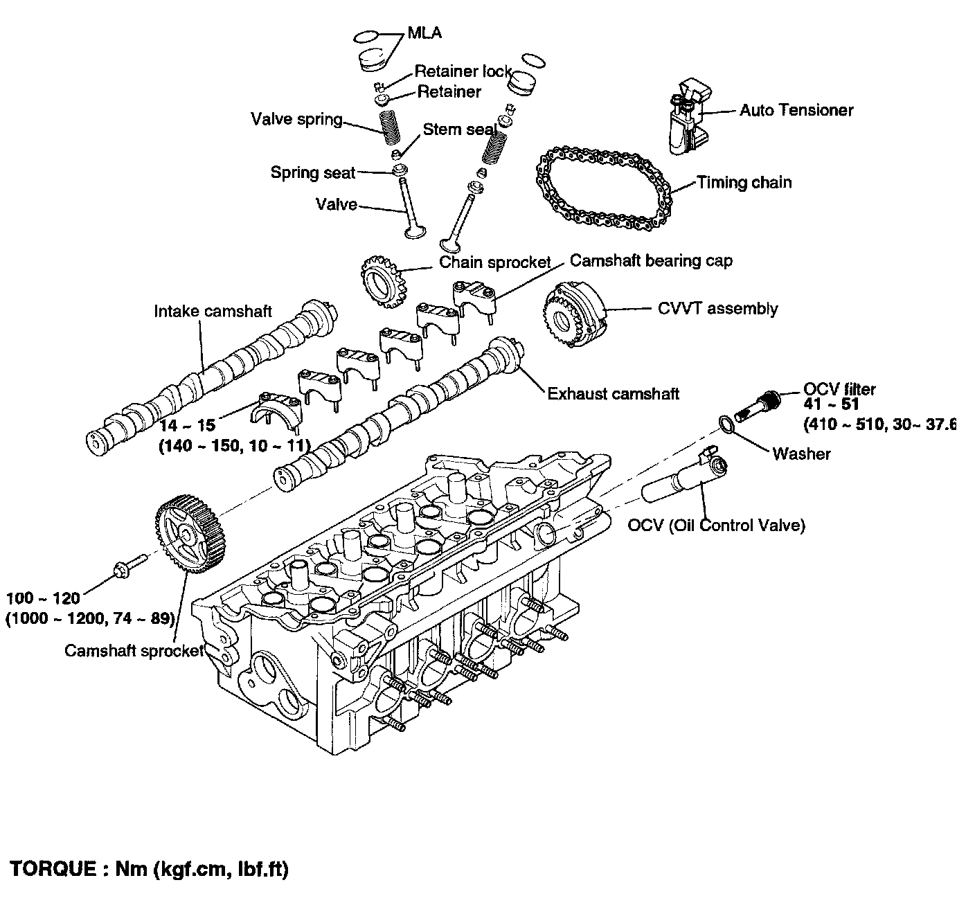 CVVT assembly to exhaust camshaft bolt 66 - 78 Nm (48.7 - 57.5 ft. lbs.)