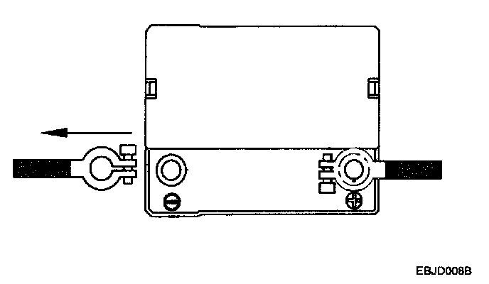 8. Clean the inside surface of the terminal clamps with a suitable battery cleaning tool. Replace damaged cables and broken terminal clamps.
