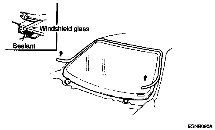 13. Perform a water-leak test for the windshield. Use a cold water spray, being careful not to direct a powerful stream of water on the new adhesive material. Allow water to spill over the edges of the glass.