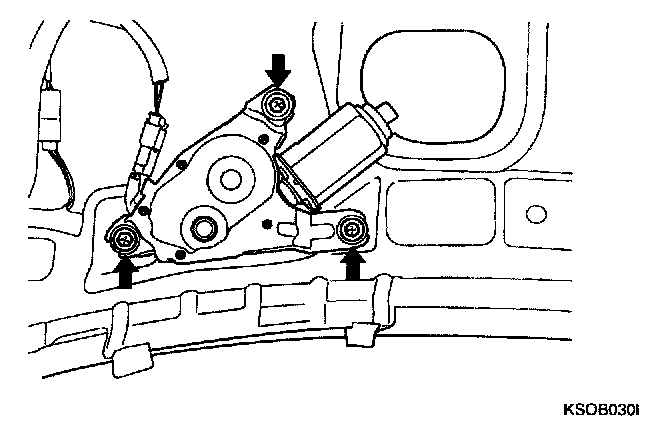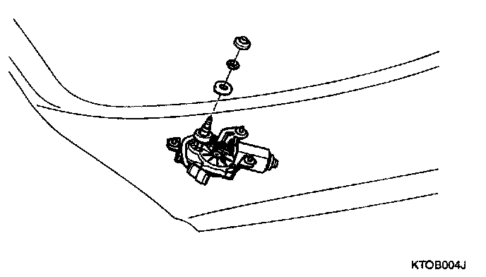 5. Remove the rear wiper motor after removing 3 bolts, and disconnect the motor's connector.