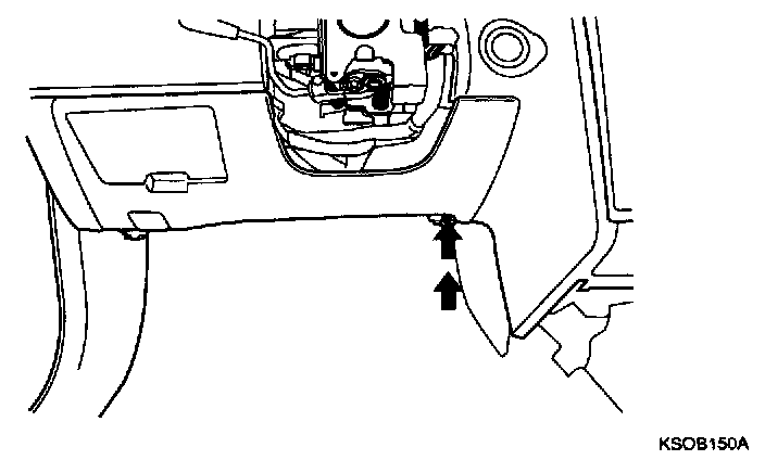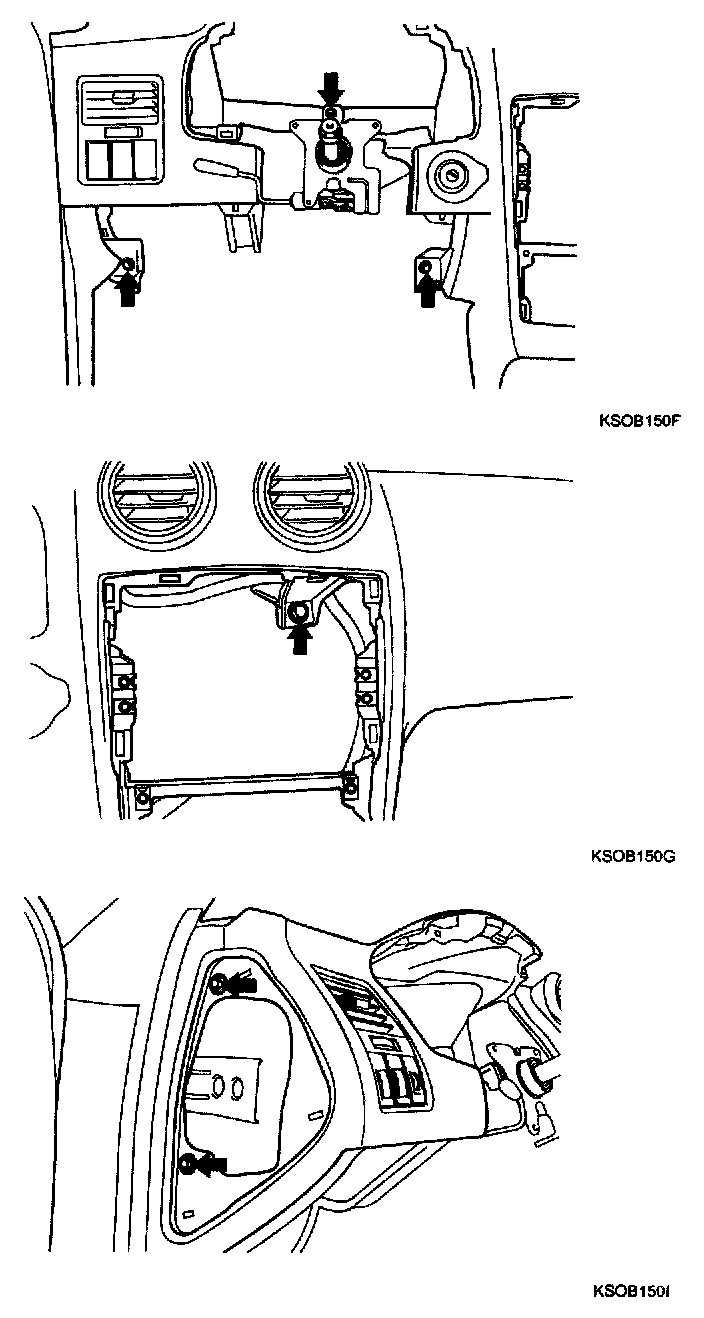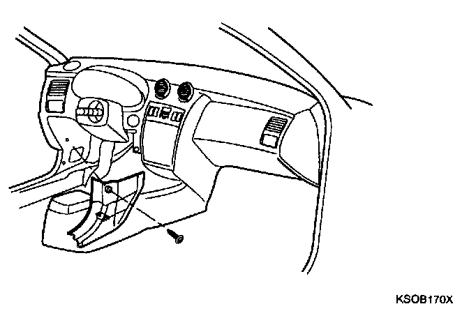 9. Disconnect the hood release cable and connectors from the cover. After removing the 2 screws, remove the crash pad under cover of the passenger compartment.
