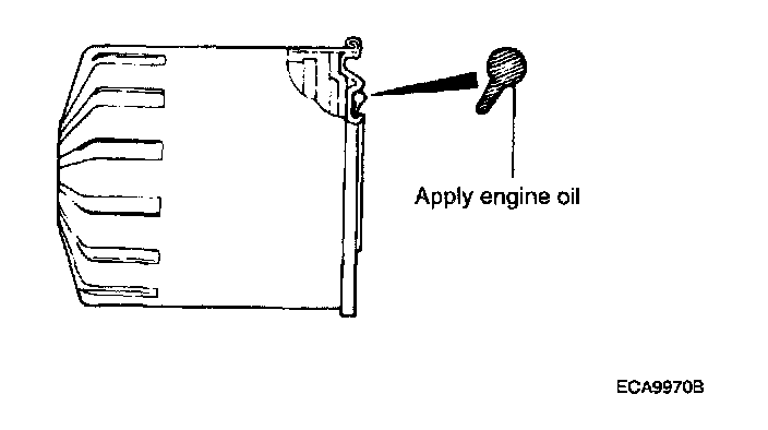 2. Before installing a new oil filter on the engine, apply clean engine oil to the surface of the rubber gasket.