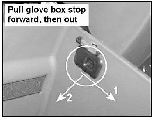 Then pull the front edge in toward the inside of the glove box and pull it out to remove it (2).