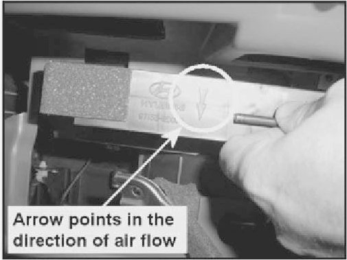 This bulletin describes the steps necessary to add or replace the cabin air filter for the Elantra and Tiburon. The cabin air filter is a replaceable paper element filter that removes particulates such as dust from the air. The cabin air filter for these vehicles is located in a slot above the blower motor. It is accessed by lowering the glove box (see the installation/replacement procedure below).