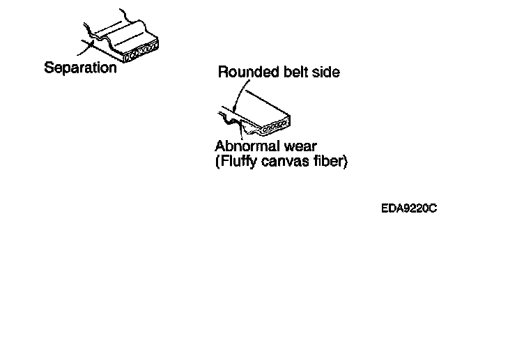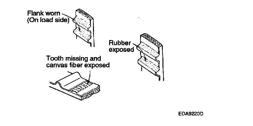 1. Inspect the belt closely. If the following problems are evident, replace the belt with a new one.