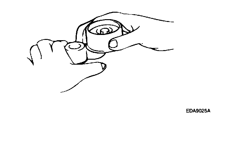 2. If backlash or an irregular noise is observed when rotating the pulley, replace the timing belt tensioner and idler pulley.