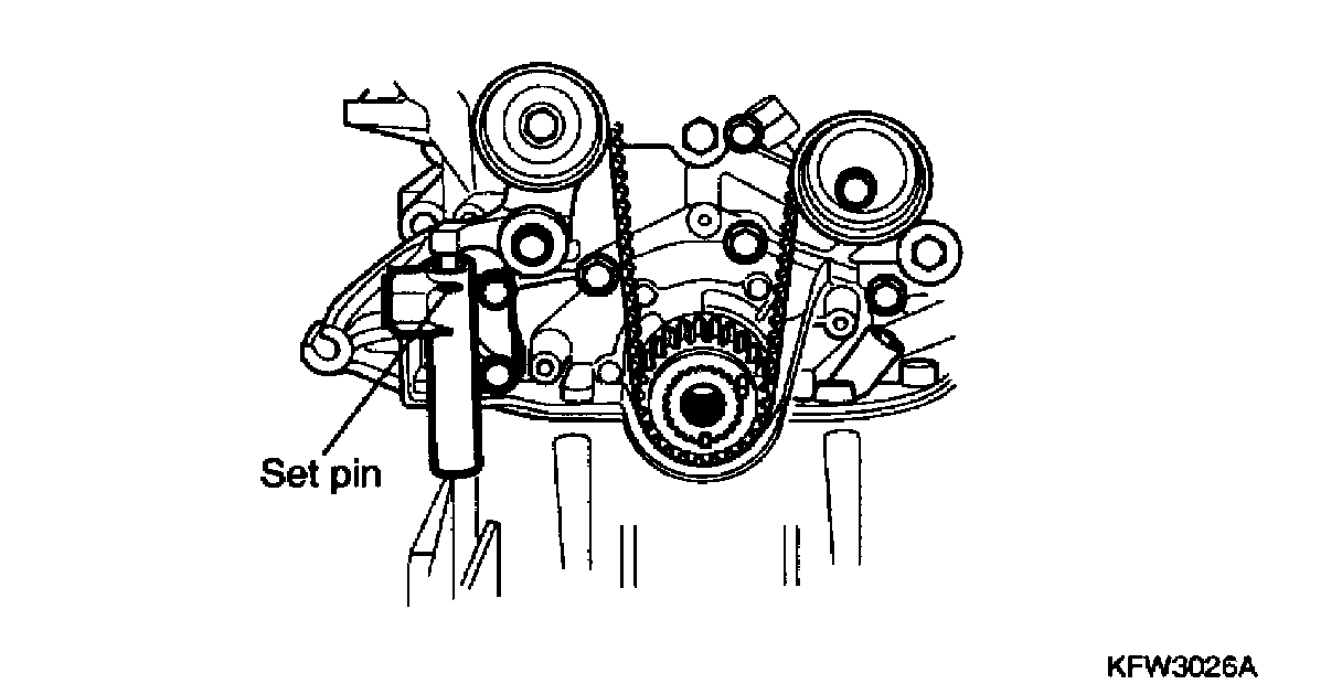 NOTE: At this time auto tensioner's set pin should be compressed and secured with set pin.