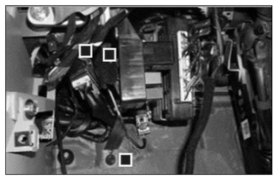5. Remove the ECM mounting bolt (1 each) and nuts (2 each) using a 10 mm socket.