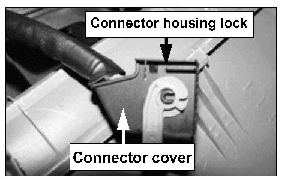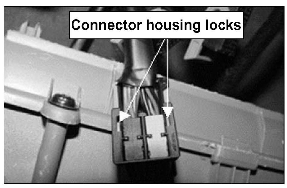 9. Locate the connector housing lock.