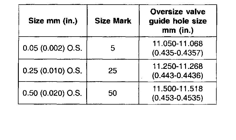 Valve Guide Oversizes: