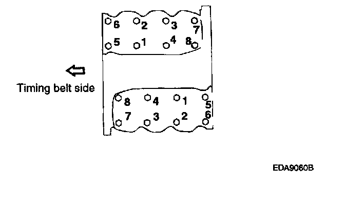 1 ) Tighten all bolts temporarily to half of the specified torque in the sequence 1.2.3.4.5.6.7.8
