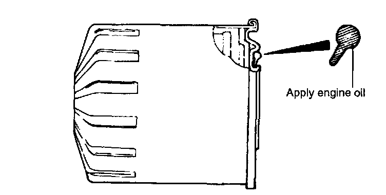 2. Before installing a new oil filter on the engine, apply clean engine oil to the surface of the rubber gasket.