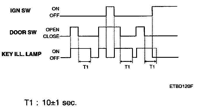 2. Delaying "ON" state of ignition key hole illumination for 10 sec. when the door is closed in case of No.1) state.