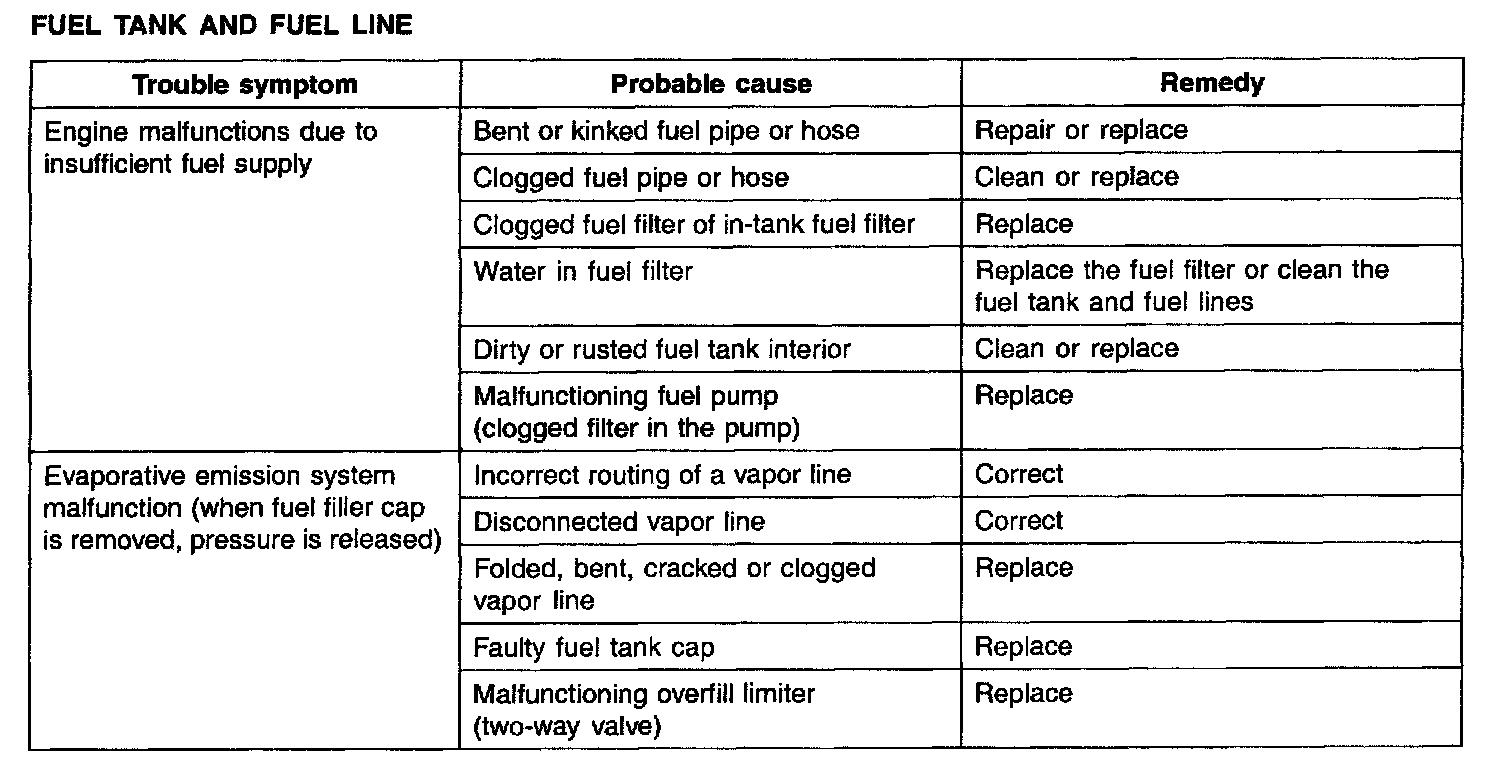 3. Check the fuel tank for deformation, corrosion or cracking.