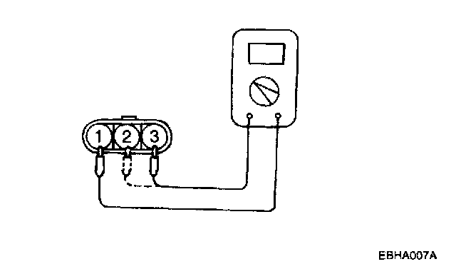 Connect the negative (-) terminal of a 3 V power supply to terminal 2 of the power transistor; then check whether there is continuity between terminal 3 and terminal 2 when terminal 1 and the positive (+) terminal are connected and disconnected.