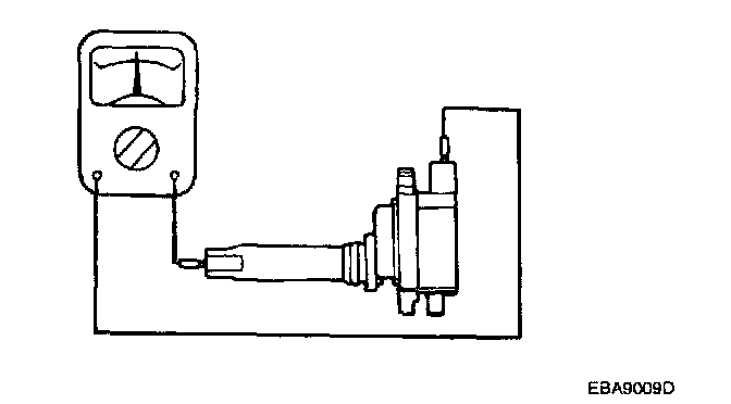 Measure the resistance between the high-voltage terminals of the ignition coil.