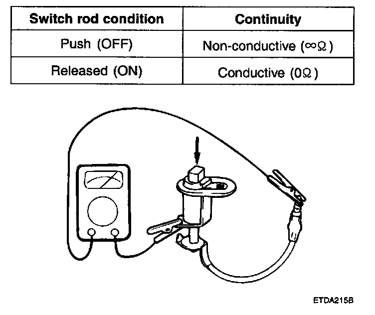 3. Check for continuity between the terminal and body while pushing the rod.