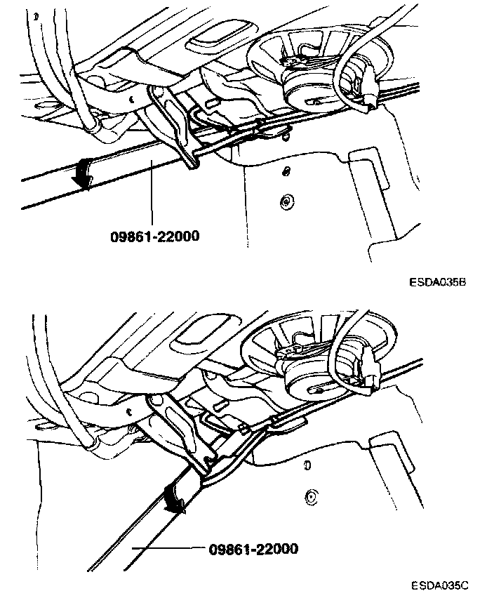 2. Remove the torsion bar by using the torsion bar wrench (09561-22000) as shown.