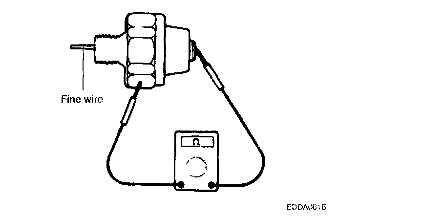 3. If there is no continuity when a 50 kPa (7 psi) vacuum is applied through the oil hole, the switch is operating properly.