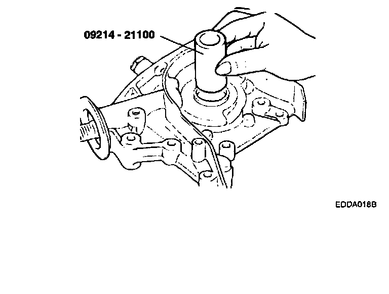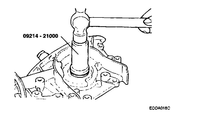 2. Using the special tool, Crankshaft front oil seal installer (09214-21000), install the oil seal.