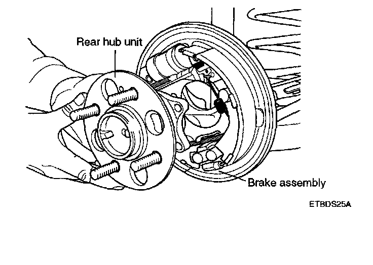 7. Remove the rear hub unit bearing from the brake assembly.