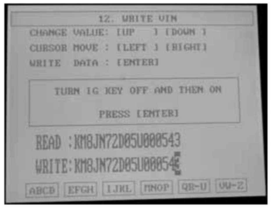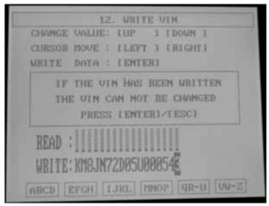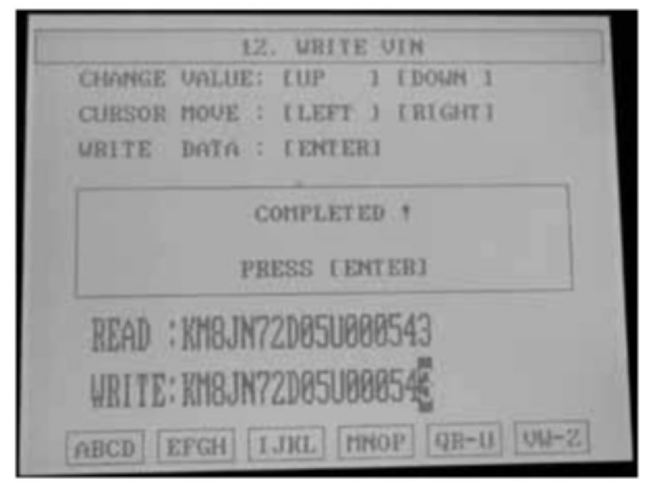 15. The VIN writing procedure is now completed. Press ENTER to return to the diagnosis menu.