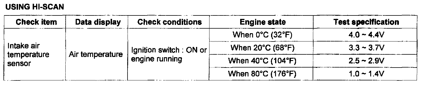 - When the intake air temperature is detected below -40°C or higher than 12O°C.