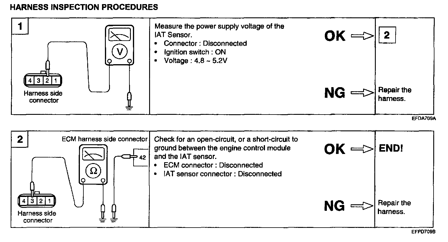 1. Using a multi meter, measure the IAT sensor resistance between terminals 3 and 4.