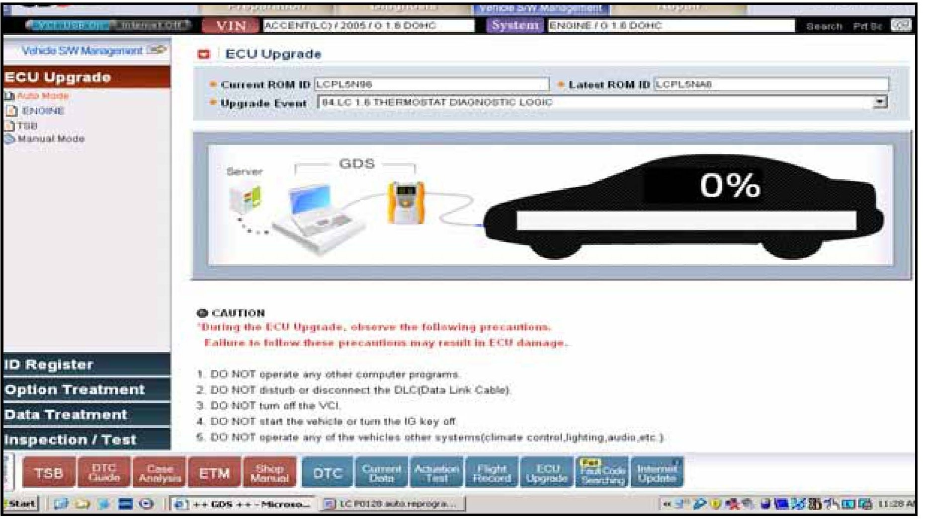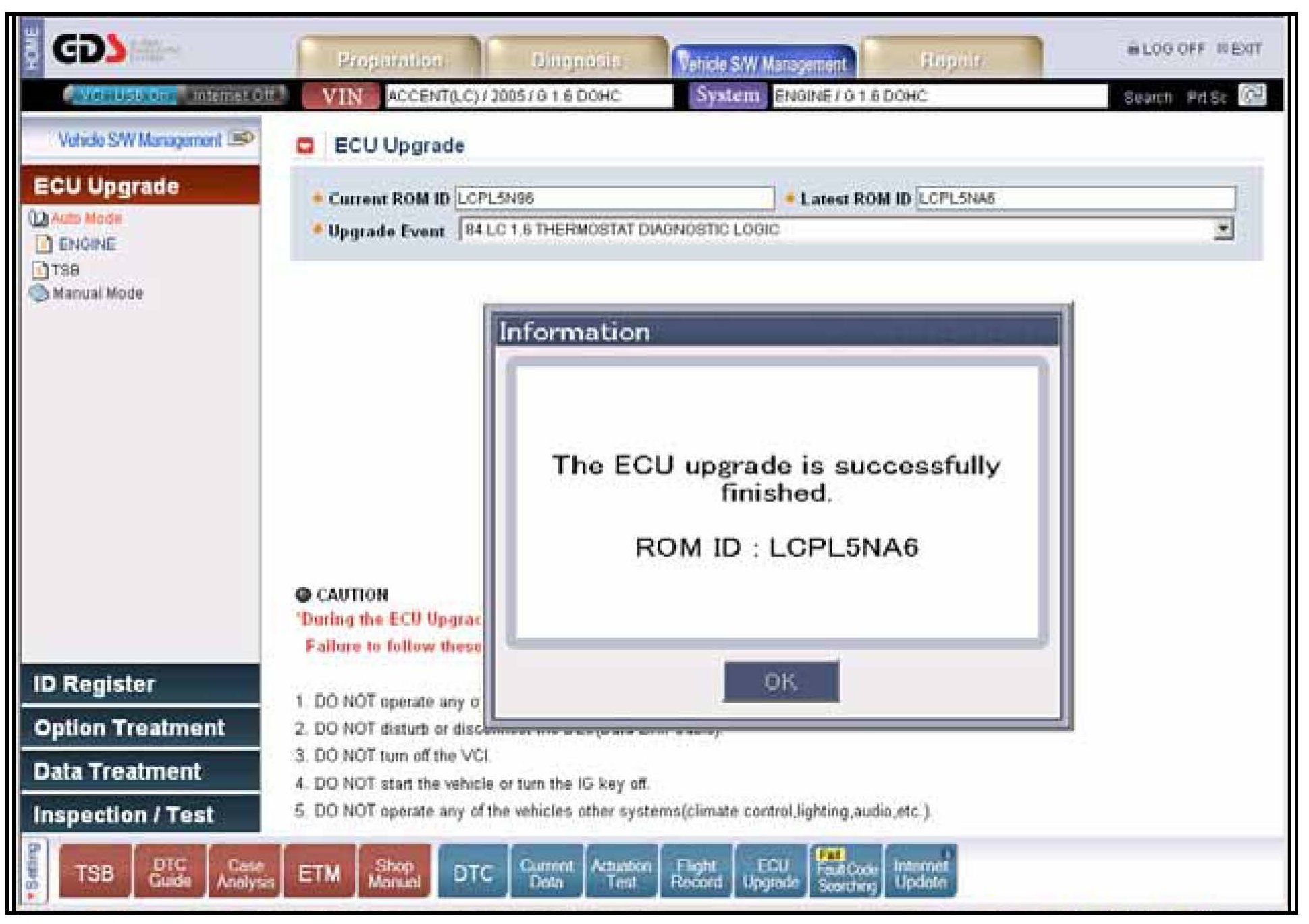3. Select Auto Mode then ENGINE at the left ECU Upgrade column and you will get the screen shown.