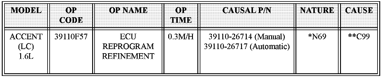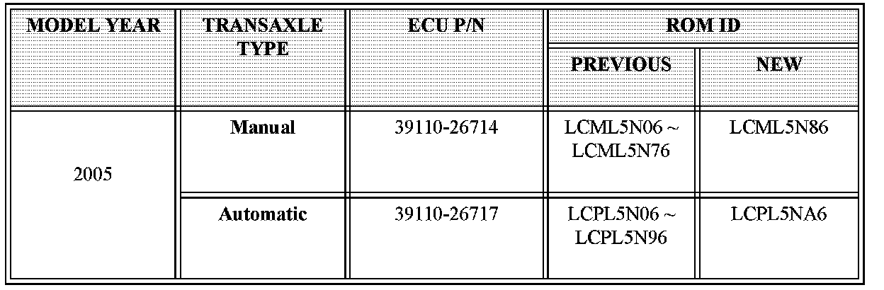^ Model: 2005 model year ACCENT (LC) vehicles with 1.6L DOHC engine