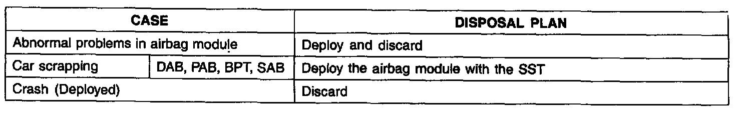 After deployment, the airbag module should be disposed of in the same manner as any other scrap part, except that the following points should be carefully noted during disposal.