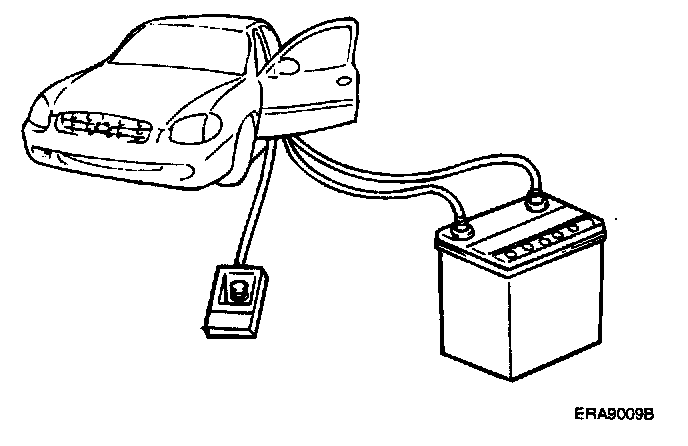 2. Disconnect the negative (-) and positive (+) battery cables from the battery terminals, and then remove the battery from the vehicle.