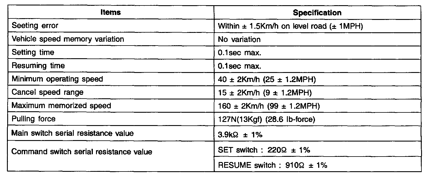 Cruise Control: Specifications