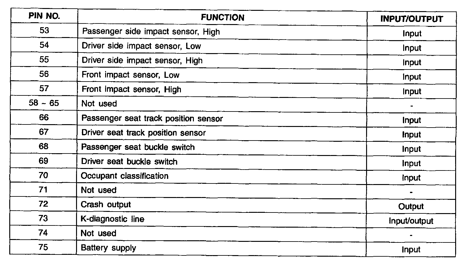 SRSCM Connector DAB+PAB+SAB+BPT Pin No. 53 - 75: