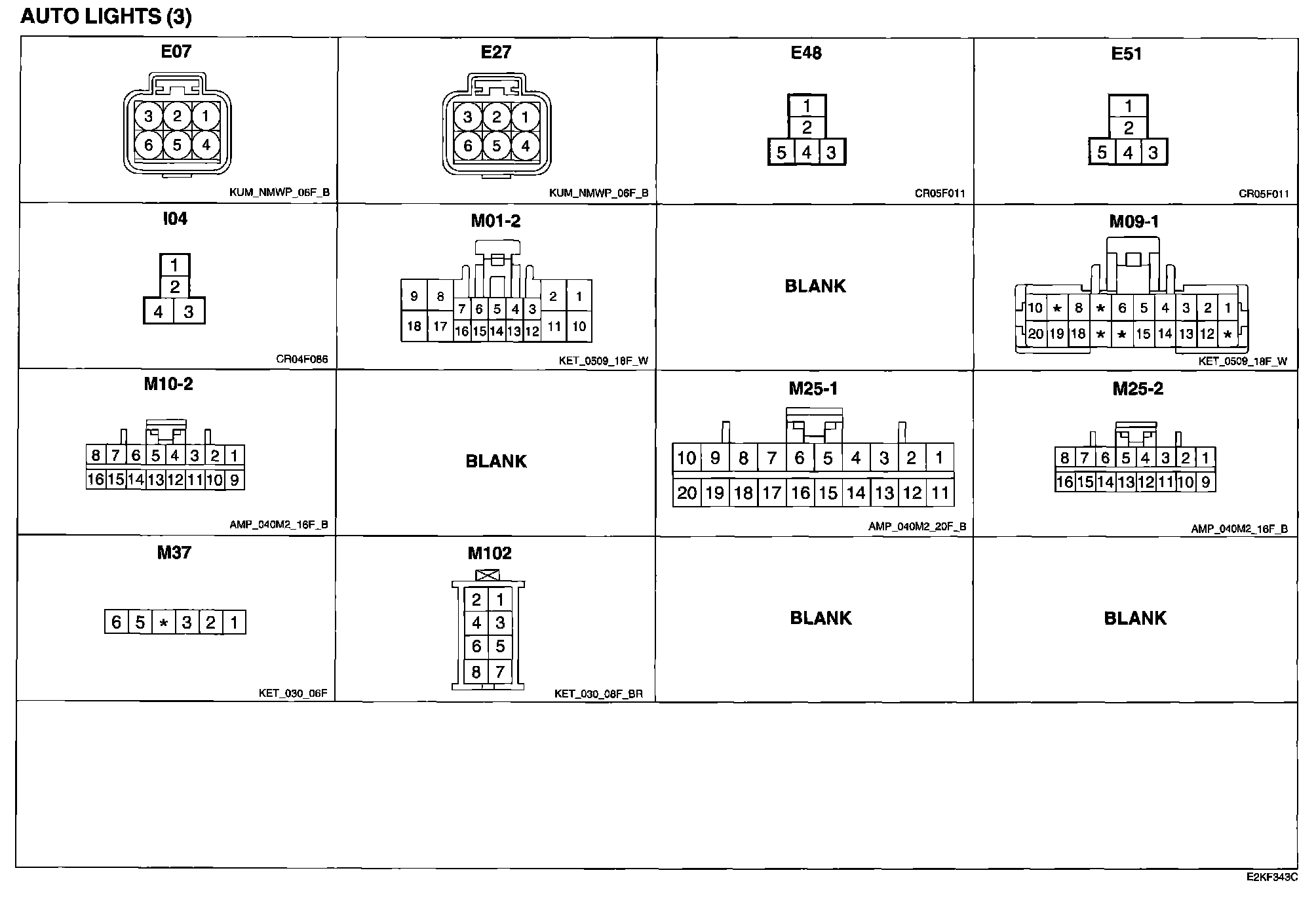 Auto Lights (3) Connector Pin Outs: