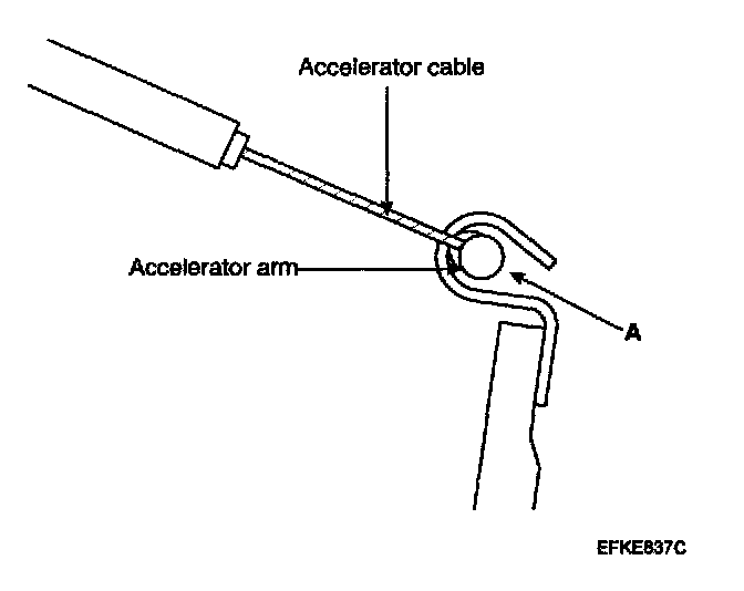 3. Securely install the resin bushing of the accelerator cable on the end of the accelerator pedal.