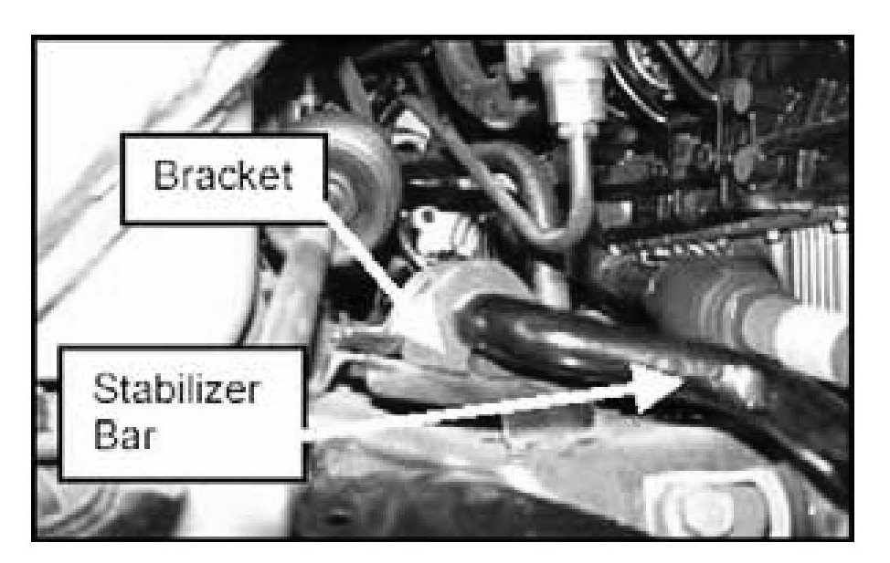 9. Remove both stabilizer bar brackets and remove the stabilizer bar. This will allow for easy access to steering gear and linkage mounting bolts.