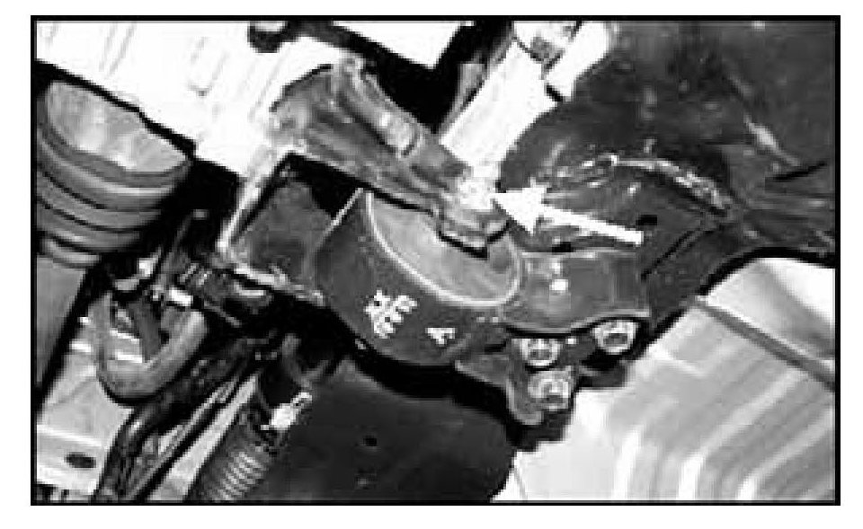 16. Loosen both left and right front cross member assembly fixing bolts. Do not remove the bolts completely.